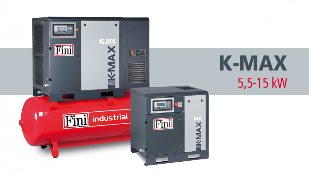 Os contínuos investimentos em inovação técnica e de produtos permitiram à Fini ampliar a oferta no setor industrial com a introdução da nova linha K-MAX: compressores de parafuso rotativo com transmissão direta sem engrenagens, com potências de 5,5 a 15 kW, controladores electrónicos ETIV de última geração e motores IE3 “Premium Efficiency”.